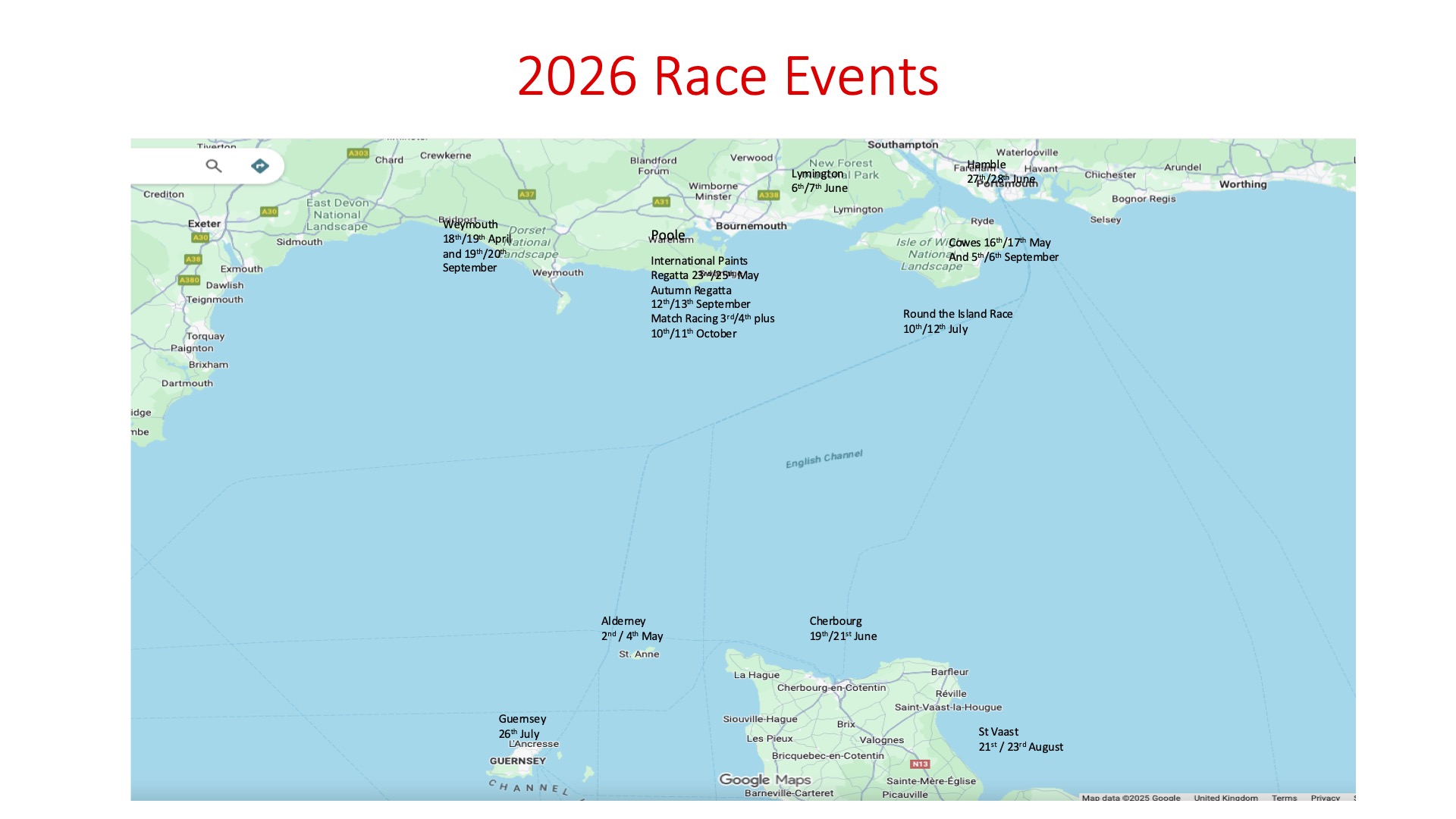 17th May. A challenging tidal race home to Poole. Event Price £2000 per boat.