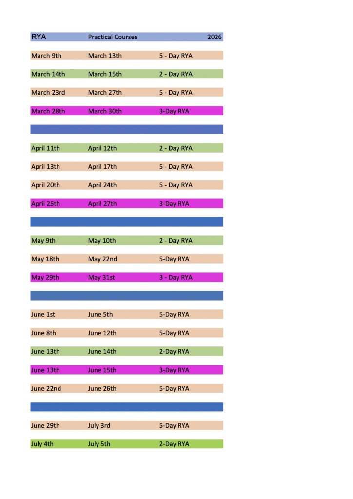2-Day RYA events can be used to complete a Start Yachting Course or can be the first weekend of a Competent Crew or a Day Skipper course.